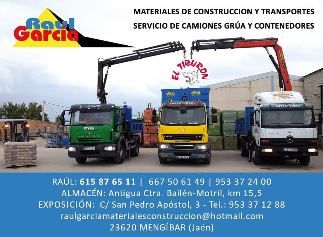 Materiales de construcción y transportes. Servicio de camiones grúa y contenedores.